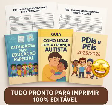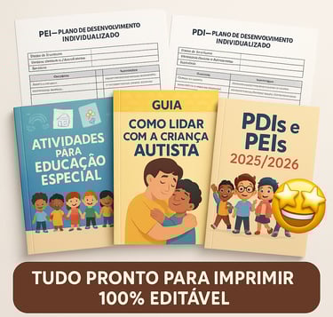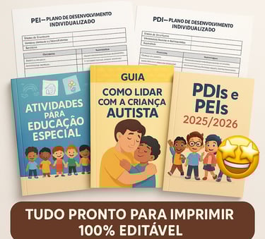 Pensando em você, professor(a), desenvolvemos um Kit completo com mais de 200 modelos de PEIs e PDIs 📝, prontos para personalizar e atender às necessidades específicas de seus alunos.