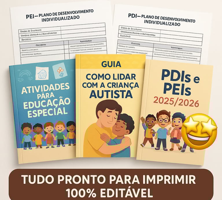 🎯 Nossa seleção cobre todas as nuances da Educação Especial, desde crianças com TEA até alunos com altas habilidades. Simplifique sua rotina e foque no que realmente importa: o desenvolvimento dos seus alunos! 🌟